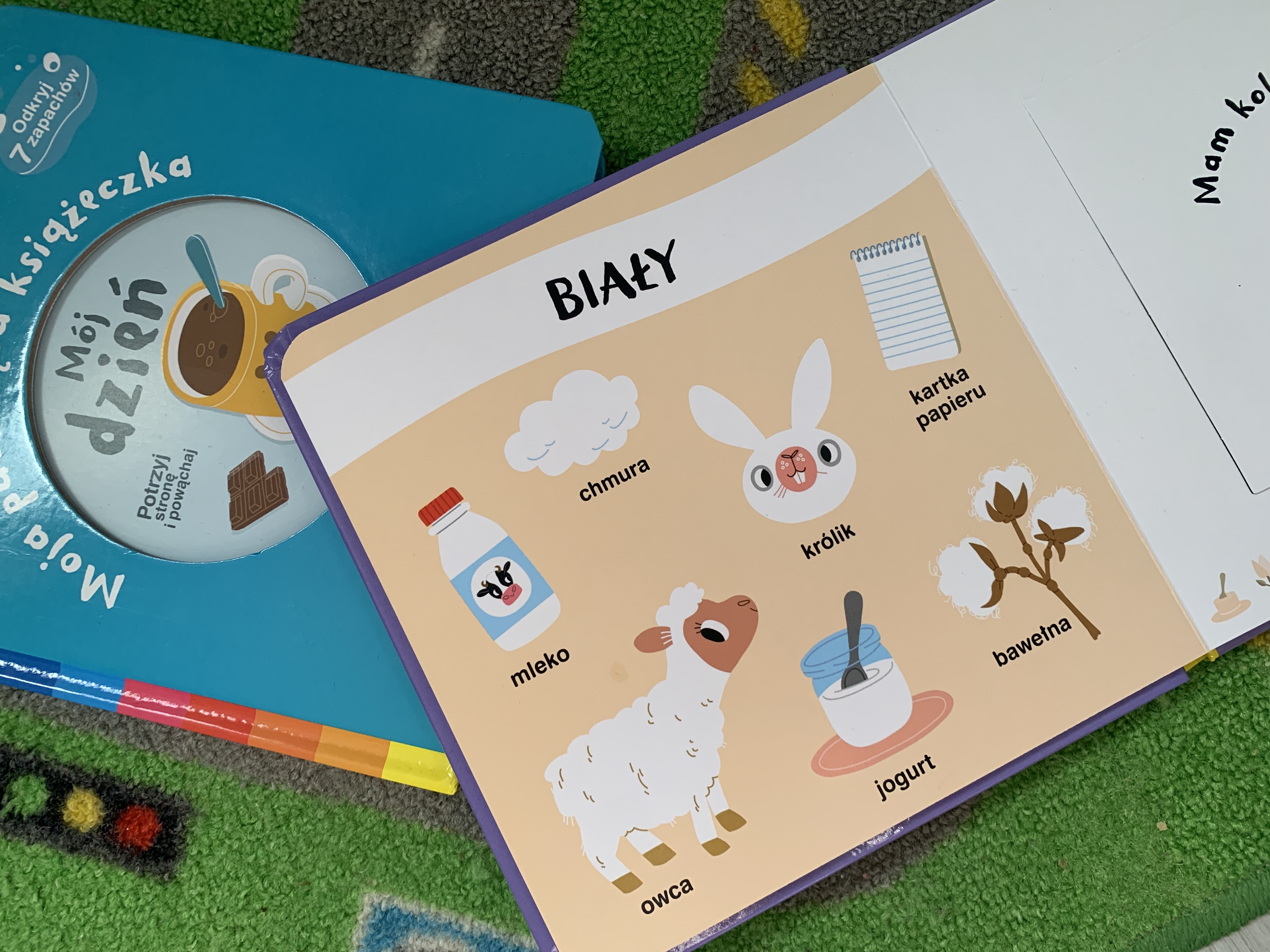 Jako rodzic uwielbiam te książki. Leon interesuje się niesamowicie mocno kolorami, chociaż zna je doskonale i to w trzech językach. Nie zmienia to jednak faktu, że jak jest coś o kolorach to on na pewno się w tym zakocha. Mamy już kilka Moich pachnących książeczek z kolorami i są w codziennym użytku. Jeśli nie wąchaliście siedem pomieszanych zapachów to jesteście szczęściarzami.
